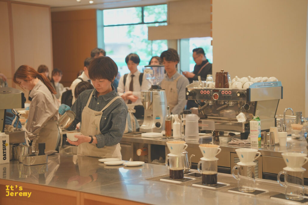 這家分店繼承了藍瓶一貫的極簡主義設計風格,店面寬敞且明亮,以白色、木質色調和金屬元素為主,營造出時尚且開放的空間感。這裡的特色是開放式的吧台設計,顧客可以近距離觀看咖啡師專注地為每一位客人手沖咖啡的過程,充分體驗品牌對咖啡品質和新鮮度的堅持。