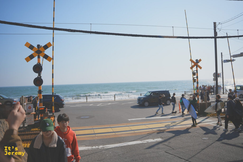 這個平交道位於鎌倉高校前站附近,它聞名全球的原因,正是因為它是經典動漫《灌籃高手》片頭曲中的標誌性畫面。動畫主角櫻木花道在平交道前,對著海邊的晴子揮手的場景,背景是湛藍的湘南海岸與緩緩駛過的江之電(江ノ電 / Enoden)電車。這個場景完美捕捉了青春的熱血、海岸的開闊以及對未來的嚮往,因此成為無數動漫迷來到鎌倉時必訪的「聖地」。